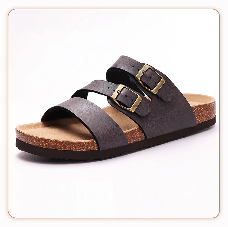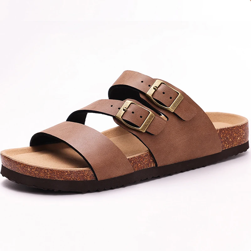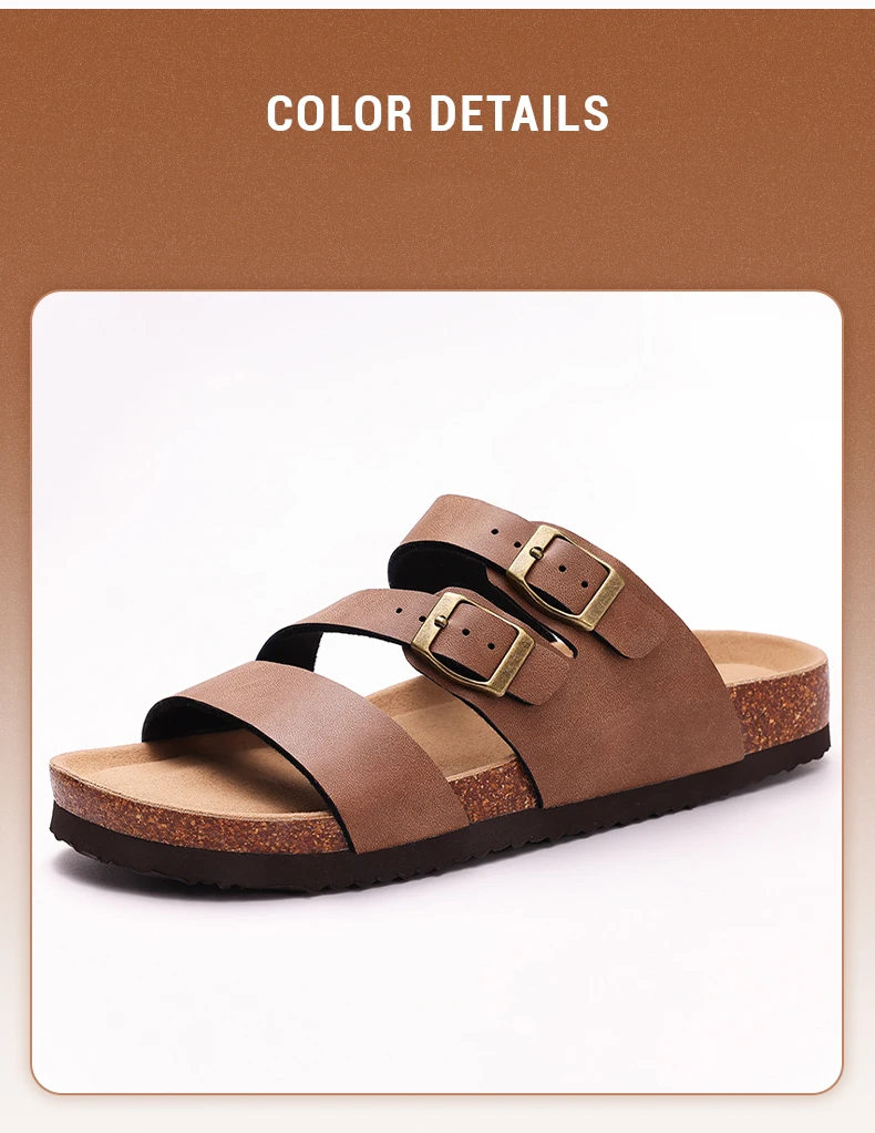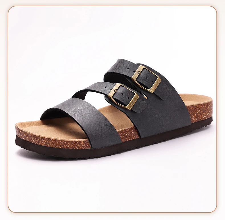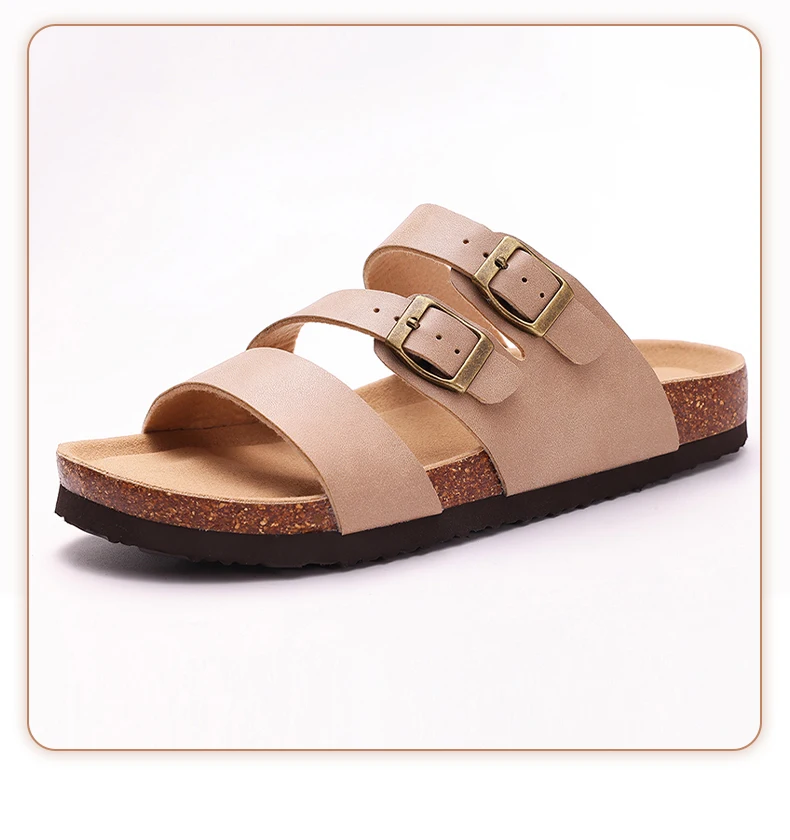 Comwarm Women New Clogs Slippers Summer Fashion Open Toe Beach Shoes With Double Buckle New Cork Footbed Mule Sandals Home Slide
