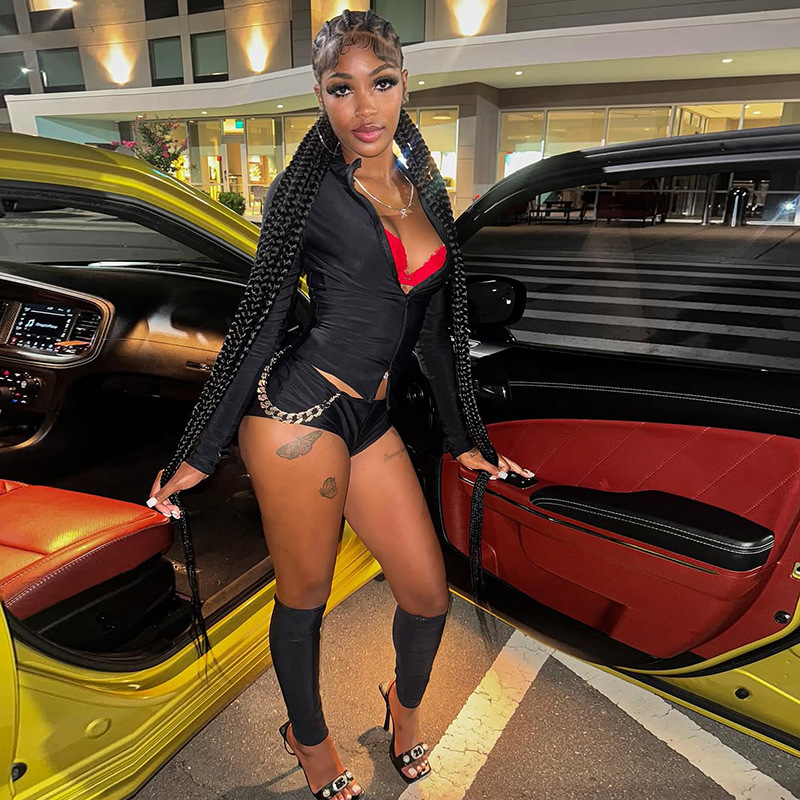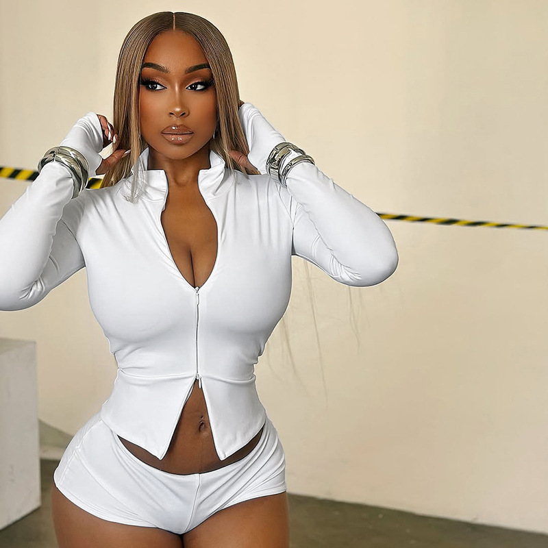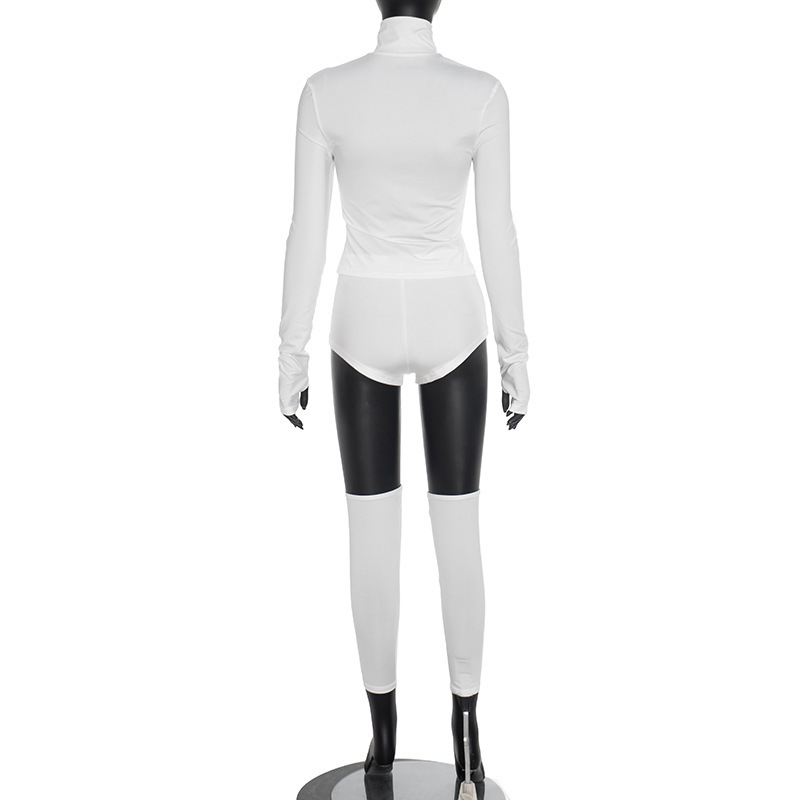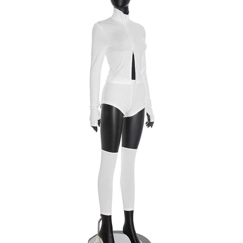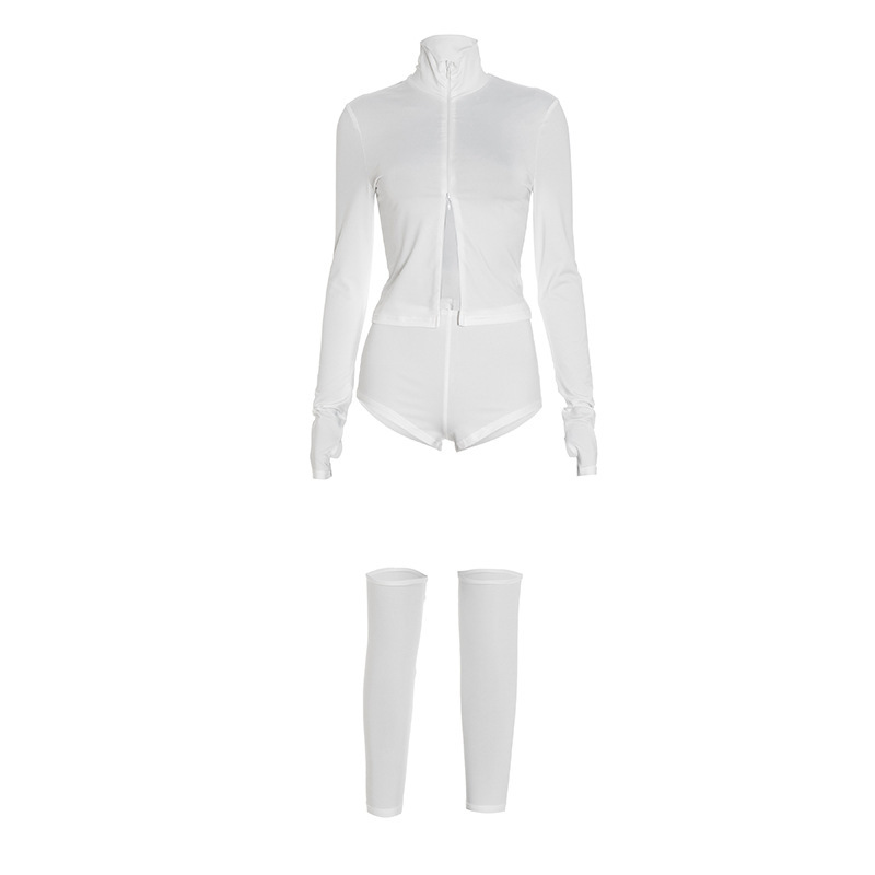 Stand-up Collar Zippered Casual Shorts And Socks Three-piece Set